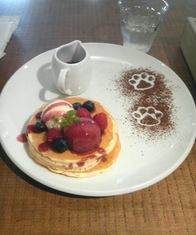 ついでに可愛いパンケーキ食べたので載せてみたり。期間限定のやつみたいです。猫の足型が可愛い♪
